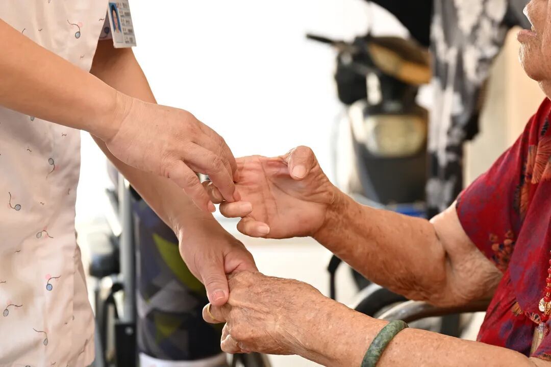 照护者有劲的双手、仁和的笑貌