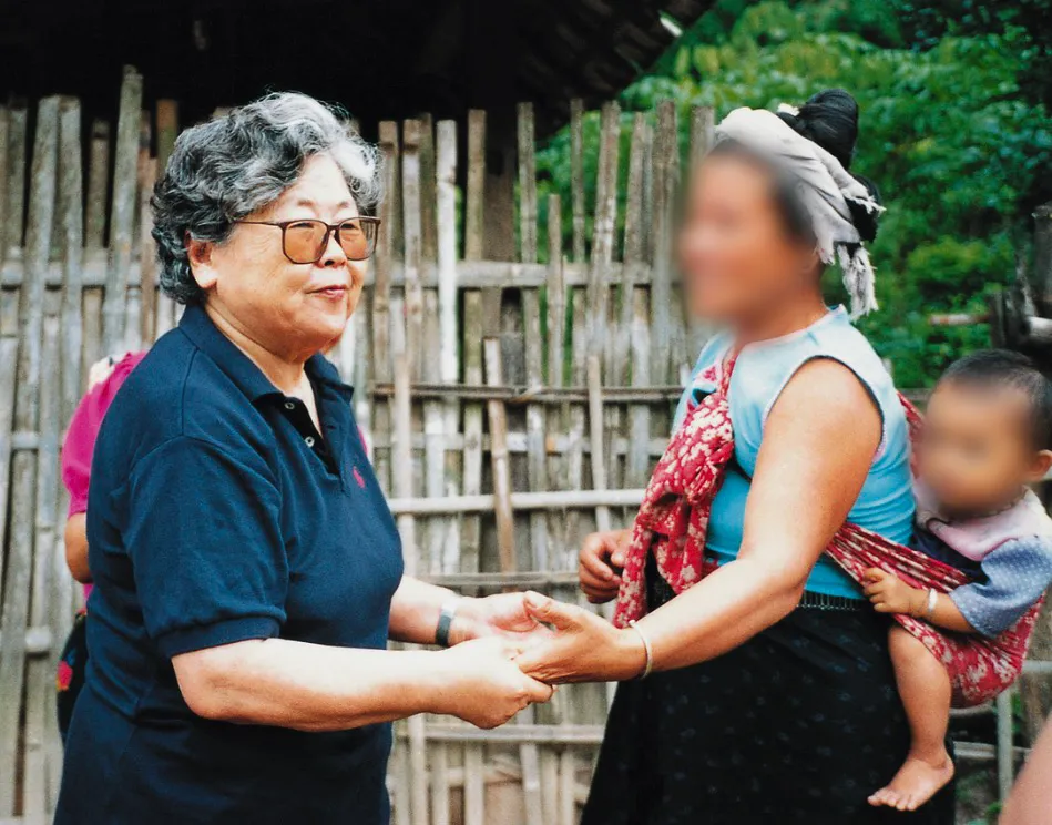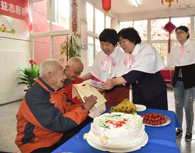 刘振华(右二)为麻风疗养员过诞辰。2005年,她被授予南丁格尔奖章。