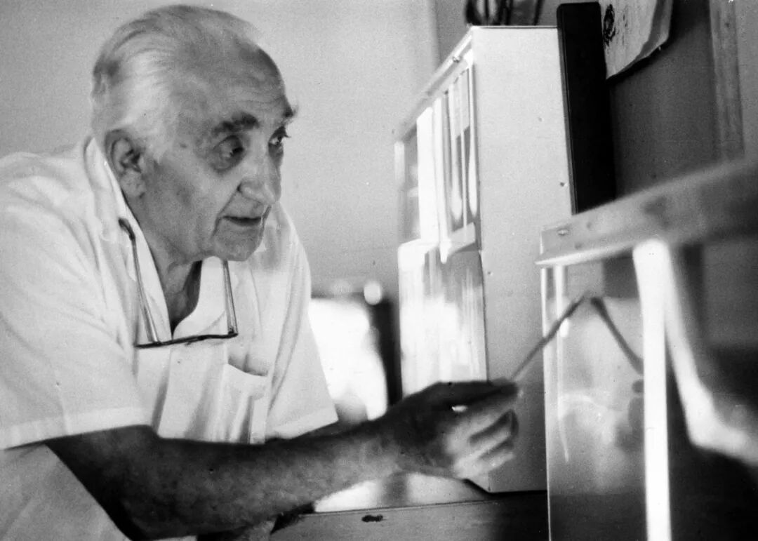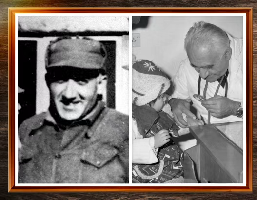左图为马海德在延安窑洞前留影;右图为1980年,70岁乐龄的马海德西宾为小患者看病。