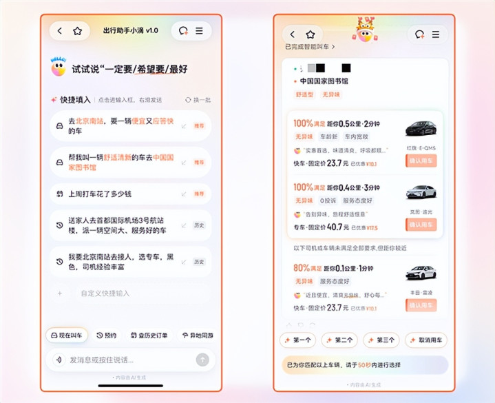 用户只需用当然话语说出需求,即可快速匹合作适车辆,打车体验迎来全面升级。