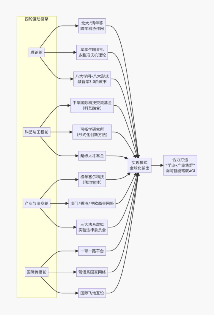 C --> D[协力打造“学业+产业集群”协同智能驾驭AGI]