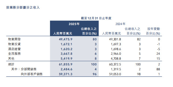 其中,金茂职业2025年总收入36.68亿元,同比增长24%,但仅占总收入的6%;物业投资收入16.72亿元,同比下落1%,占收入总数的3%;货仓收入16.20亿元,同比下落5%,占收入总数的3%。不仅举座边界对总营收的孝敬有限,中国金茂的“第二弧线”现在增长能源尚显单薄。